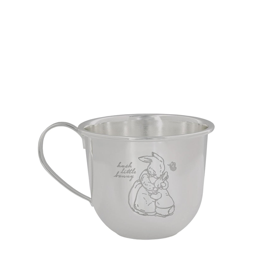 Celebrate the arrival of a little one with this beautifully crafted Beatrix Potter Baby Mug. Silver-plated and delicately etched with Peter Rabbit and Mrs Rabbit, it’s a timeless keepsake designed to be cherished for years to come. One side features the engraved text “Hush little bunny” while the reverse reads “Now run along... and don’t get into mischief.”