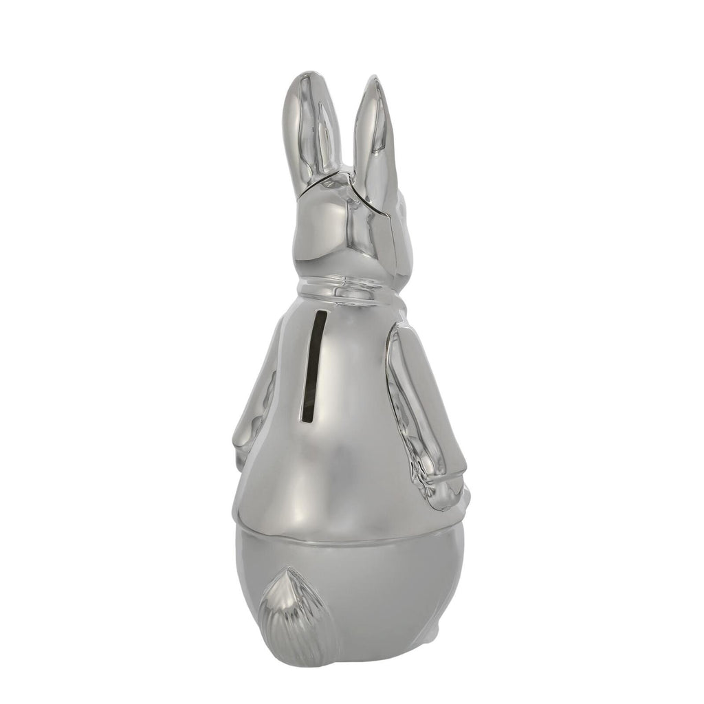 Part of the Beatrix Potter Silver Plated Collection, this sculpted money bank combines the timeless charm of Peter Rabbit with traditional craftsmanship. A thoughtful keepsake, it is designed to be treasured and proudly displayed for years to come.